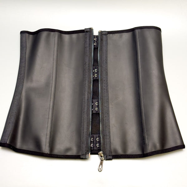 Svart perforerad träningskorsett i latex med hyskknäppning fram och 9st mjuka spiralfjädrar i metall som följsamt formar sig efter din egna midja och formar och håller in en mycket prisvärd...