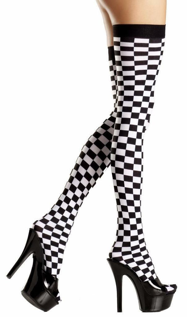Tuff svart och vit mönstrad strumpa som sitter fint på benet.
