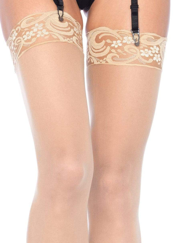 Sensuella stay-ups med söm baktill, sexig spets topp ben och osynligt förstärkt tåparti för extra elegans. Tillverkad av enkel täckt elastan garn för ökad hållbarhet och snygg matt yta samt...