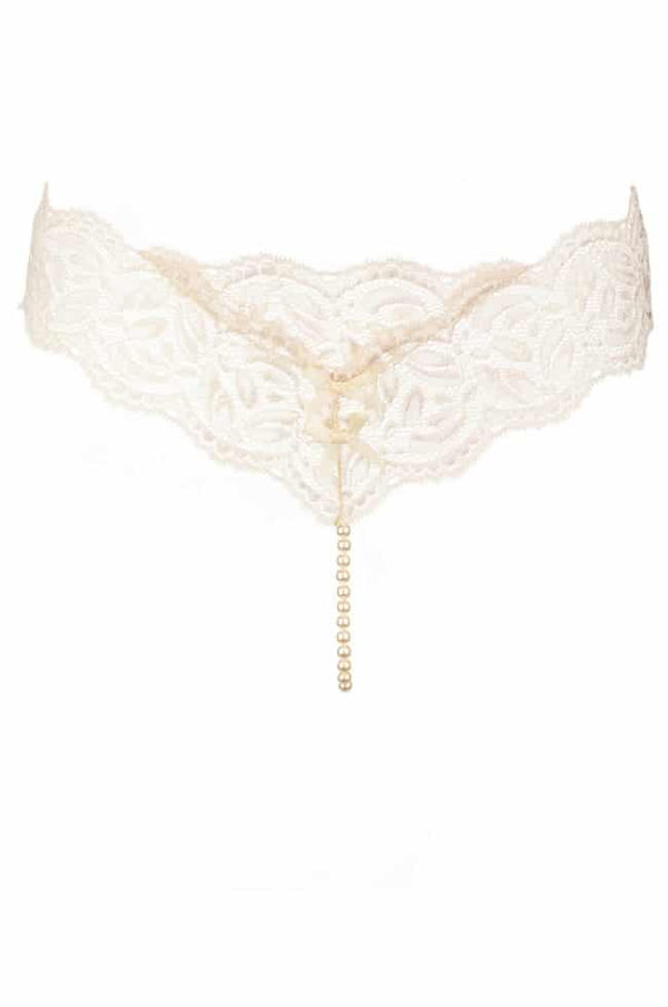 Bracli Your Night - Den unika stringtrosan med riktiga Majoricapärlor och den syndiga vackra elfenbensfärgade spetsen och med två rader av pärlor som har sällskap av en liten ring av...