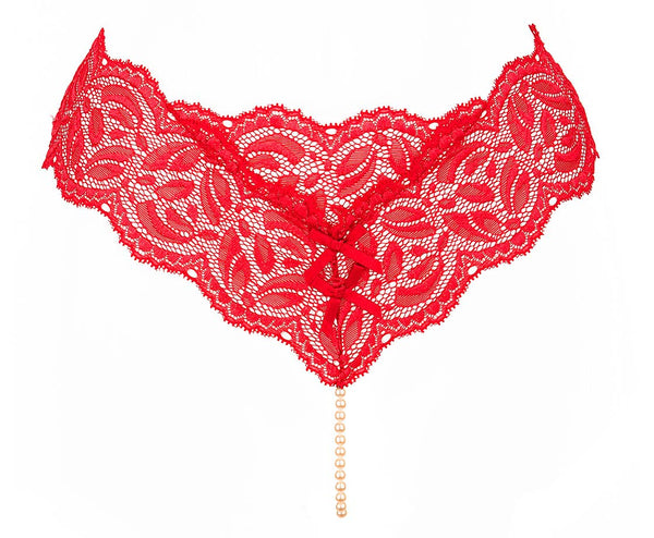 Bracli Your Night - Den unika stringtrosan med riktiga Majoricapärlor och den syndiga vackra röda spetsen och med två rader av pärlor som har sällskap av en liten ring av...