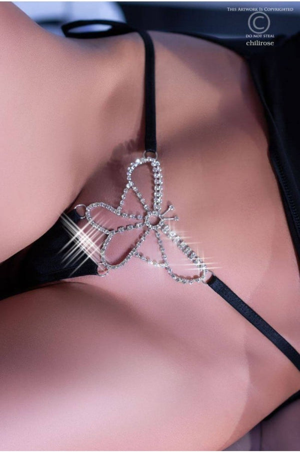 Otroligt vacker välarbetad stringtrosa Monte Carlo. Eleganta dekorationer, små rosetter, sötvattenpärla som är vackert infattad och avtagbar som du även kan använda som halssmycke medföljer gör en silverkedja. Bakstycket av...
