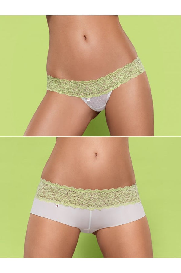 Underbara mjuka trosor en vanlig trosa i vitt och dekorativ grönt spetskant samt en likadan fast i stringmodell.