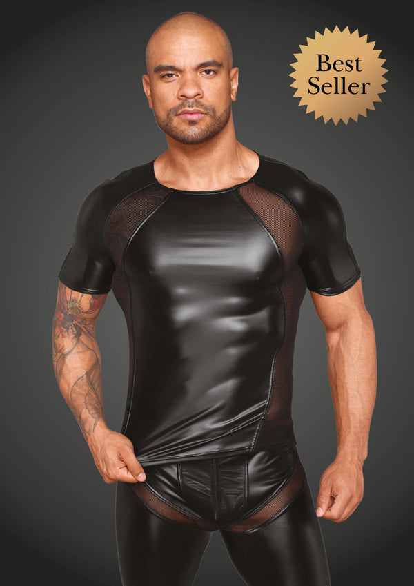 Svart läcker t-shirt med snygga detaljer i power wet look skönt material.
