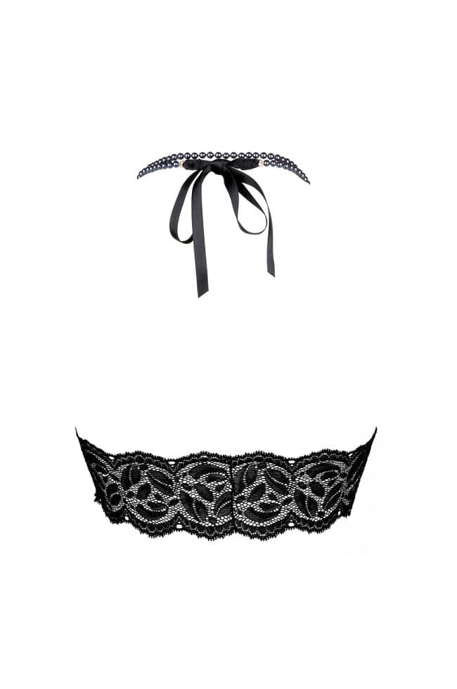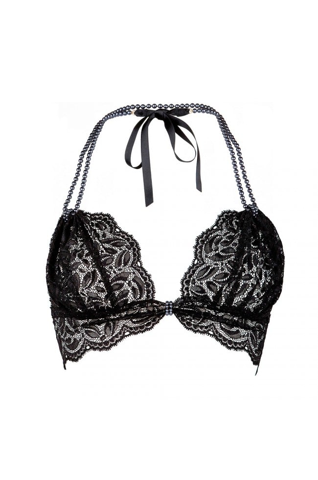 Vacker elegant pärlbehå med dubbla högklassiga svarta pärlor och exklusiv spets.