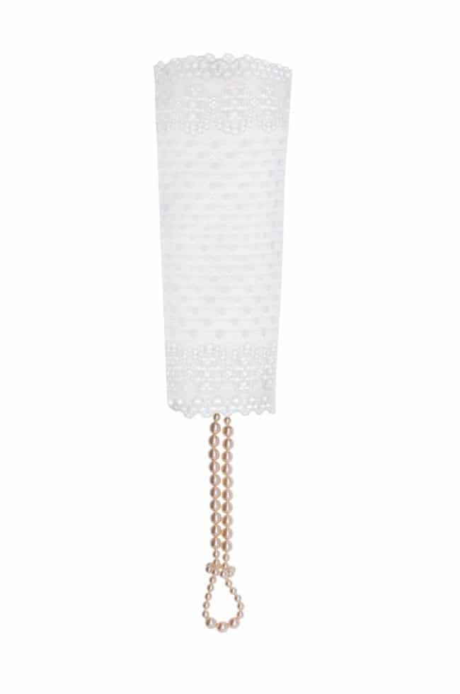 En erotisk kort handske i vacker och mjuk spets som glider över din handled och ett pärlband som skall träs runt någon av fingrarna . Ett mycket sensuellt tillbehör att bära för sig självt eller ihop med något av Bracli´s övriga sortiment.
