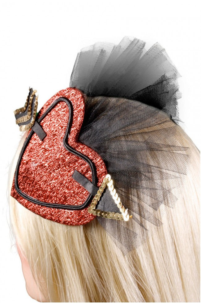 Otroligt vacker hår accessoar i form av ett rött hjärta med pil och fint tyll fästes med clips i håret.