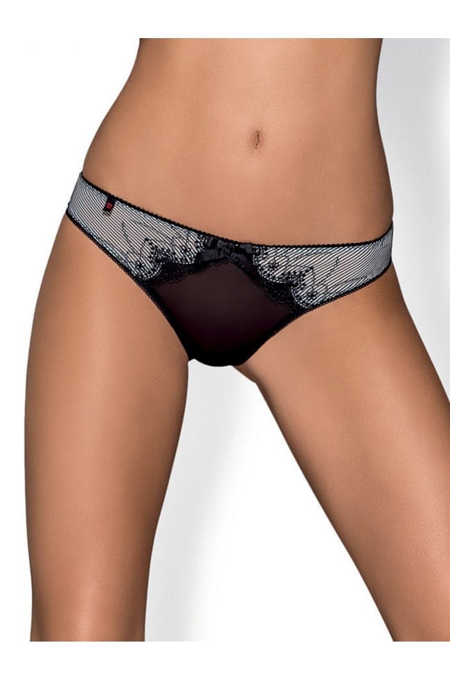 Läcker svart och grå mönstrad trosa i fin design och med en svart rosett fram.