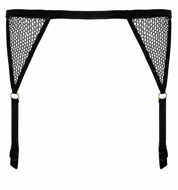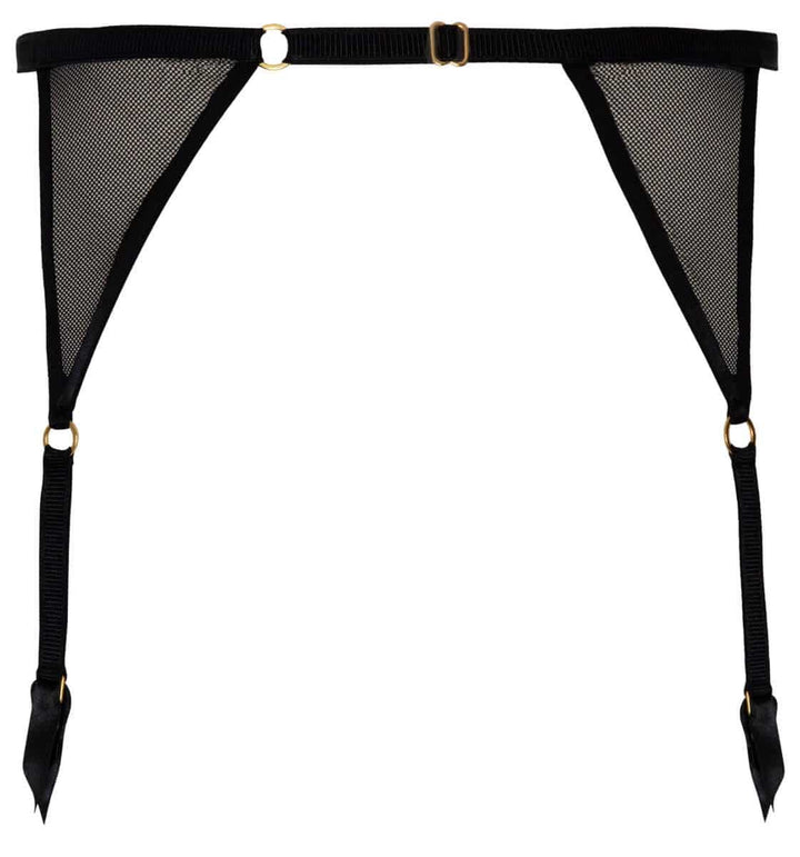 Höfthållare tillverkad av exklusiv nätspets, tyll, satin elastiska band och guldlook detaljer.