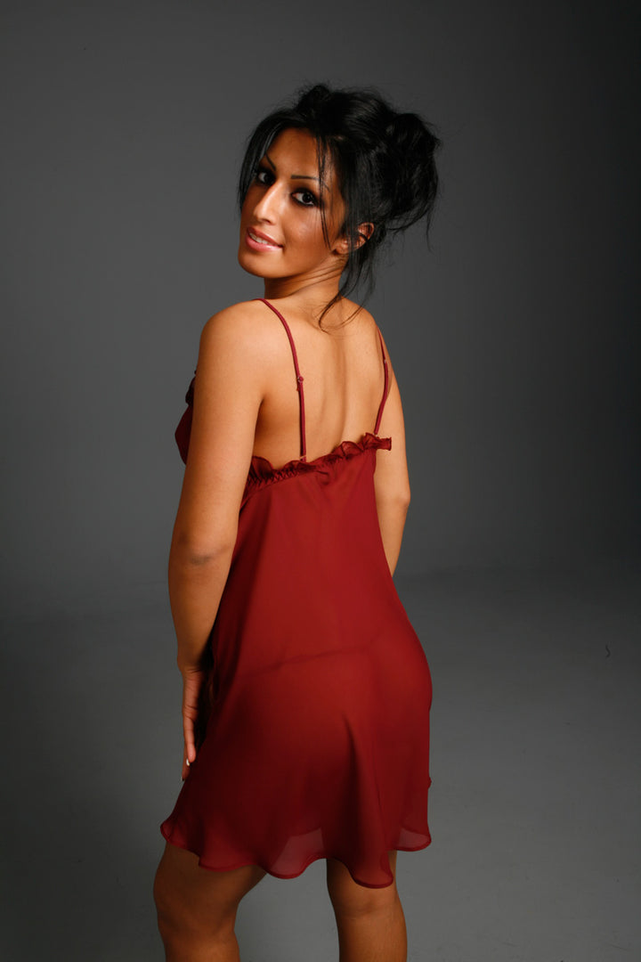 Sensuellt vinrött nattlinne med mjuka kupor och svart brodyr fram, justerbara axelband, matchande stringtrosor medföljer.