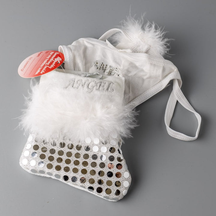 Jul strumpa med glitter och hållare med ett sexigt innehåll en stringtrosa med marabou och angel skrivet.