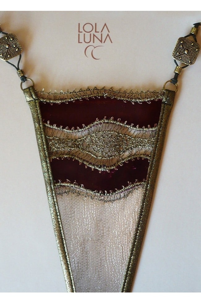 Mycket sensuell stringtrosa från Lola Luna - Sheerazade. Orientalisk välarbetad stringtrosa i tunn tyll, glansig tråd, virkade och sammets inslag, hängande dekoration fram som är avtagbar, läckra guldpläterade dekorationer på sidorna. Välarbetat bakstycke. Ett riktigt måste bland alla sexiga stringtrosor och trosor. Stringtrosan är tillverkad i 80% polyester och 20% elastan.Handtvätt rekommenderas till dessa trosor.