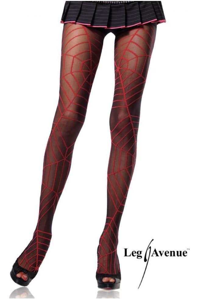 Tuffa svartastrumpbyxor med rött spindelnät, riktigt coolt mönstrade.