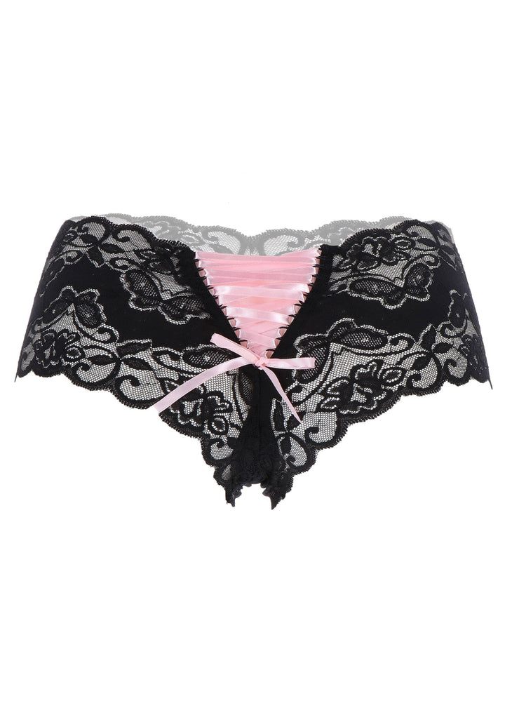 Snygg svart trosa med rosa satinband bak i snygg snörning.