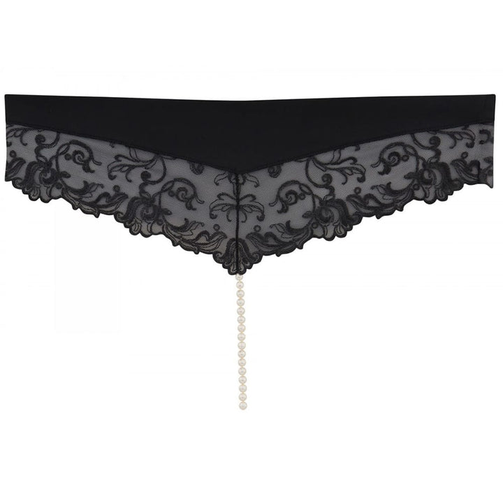 Bracli brief tillverkad med broderad spets och 100% silke. Den har en låg midja och en trendig design. Strängen av pärlor är Bracli's signatur, med denna kan du få två olika upplevelser